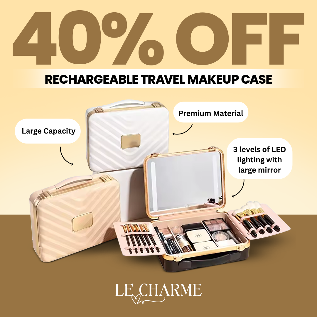 Upgrade your travel routine with up-to-a-month LED lighting, three light modes, adjustable brightness, and roomy compartments for all your must-haves.