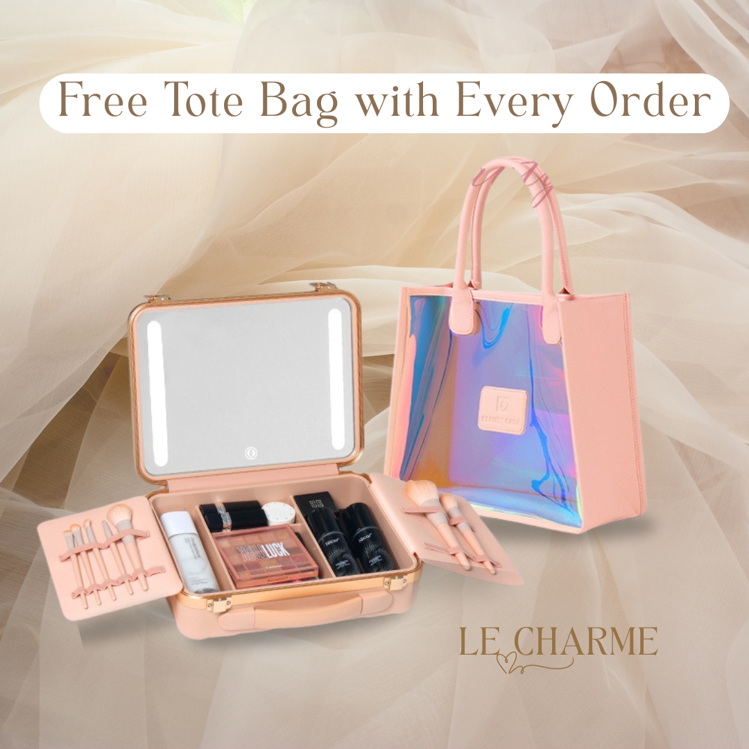 FREE 1 x Tote Bag with every cosmetic case for shopping or beach days.